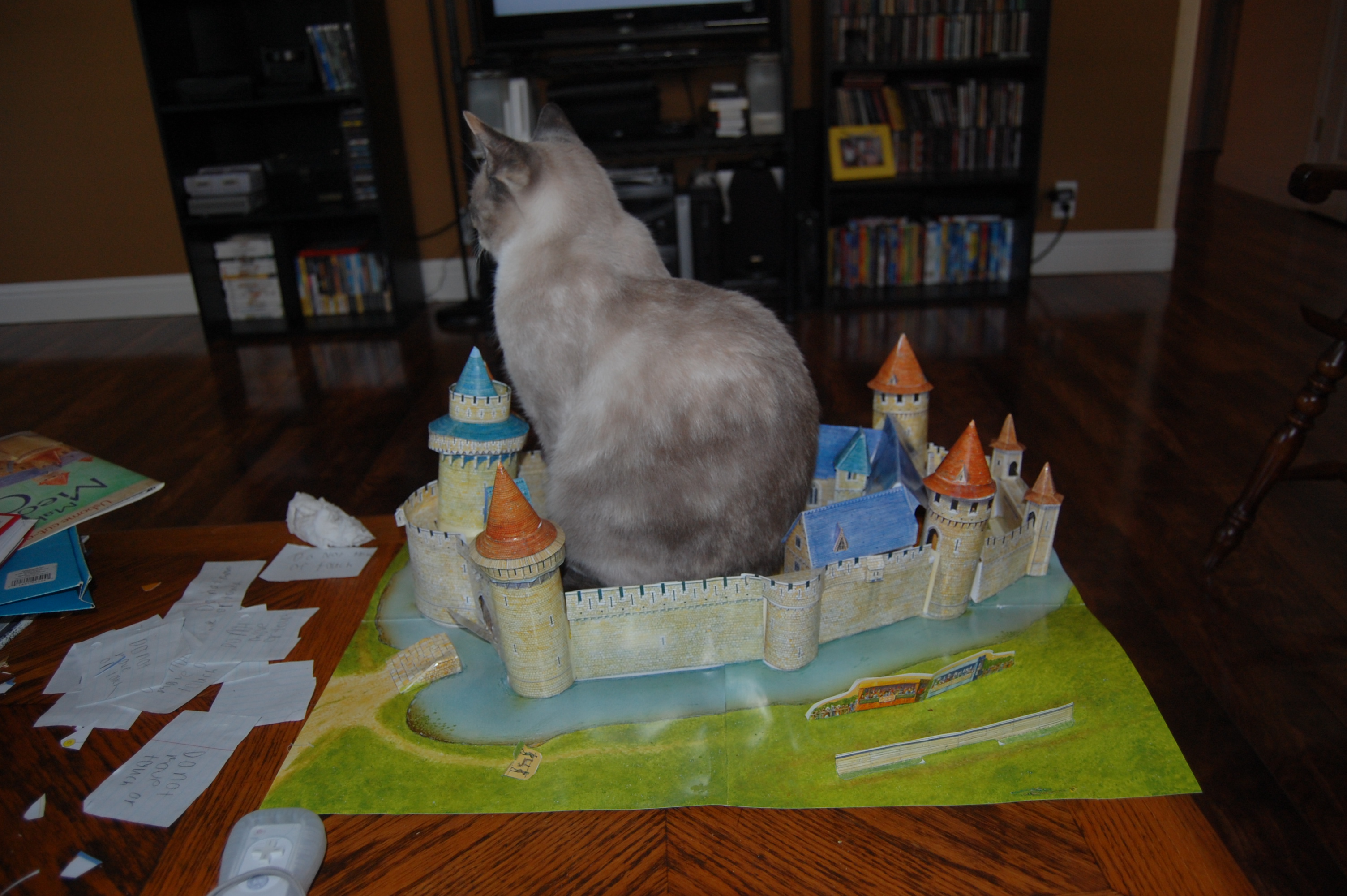 In 2012, my oldest built this castle from a kit as we studied the Middle Ages. Our family cat (well one of our cats) decided that it was the perfect spot for her to lounge, so lounge she did. This castle found a home in my husband’s work office for a long while.