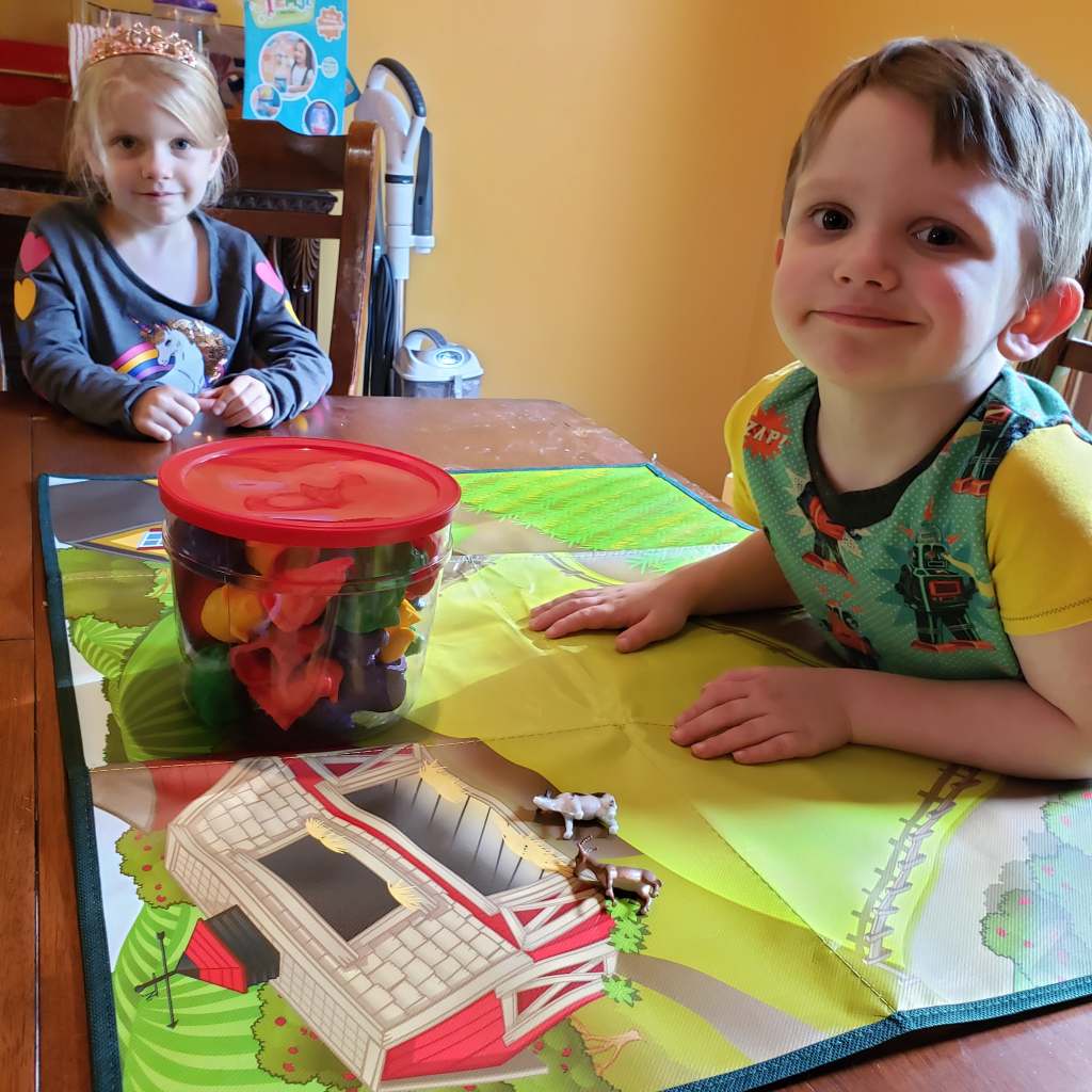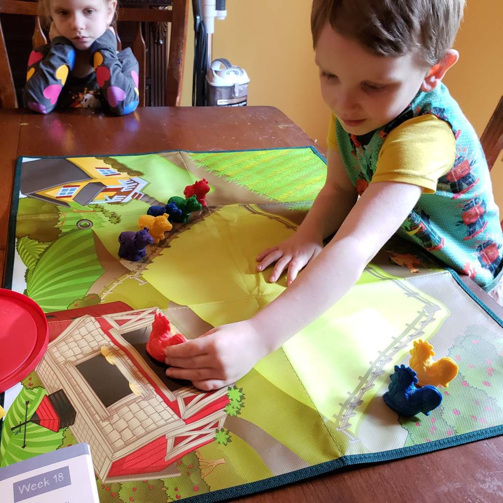 Mr. Three really wants to “play with my farm animals” again soon. He really enjoyed it, even though he’s been counting past 30 for some time now. It’s always good to reinforce those basic math concepts, but it’s also good for kids to get hands-on experience with the counters. While we did activities, his older sister looked on to make sure he was having a good time. I will definitely use this with the 2-year-old as well. I thought of some fun activities that older children can participate in using the counters, as well. I’ll share a few suggestions for that at the end.
