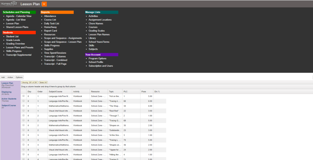It definitely is a more handy tool when you have older children who are independent – because they can sign in and see their assignments and chores. You can also enter in those state standards we talked about, and track which assignments link to them – this actually came in really handy with my oldest when we put him in public school for 8th grade. It helped with placement.