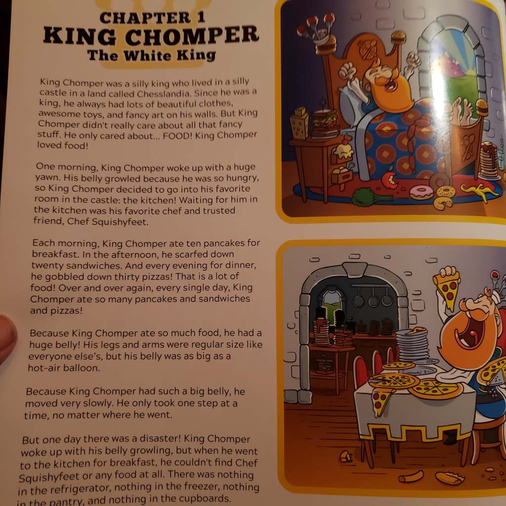 With a beginner – I played a little with my 2, almost 3-year-old, you begin with chapter one of the storybook. Read the story of King Chomper, and play through the exercises where you move him. This teaches children how the individual piece moves and prepares them for the next step. We had fun reading the story and practicing with the three exercises to gather all the pizza tokens. Once you finish playing through each exercise, the book reminds you to shake hands with each other – encouraging good sportspersonship from the beginning.