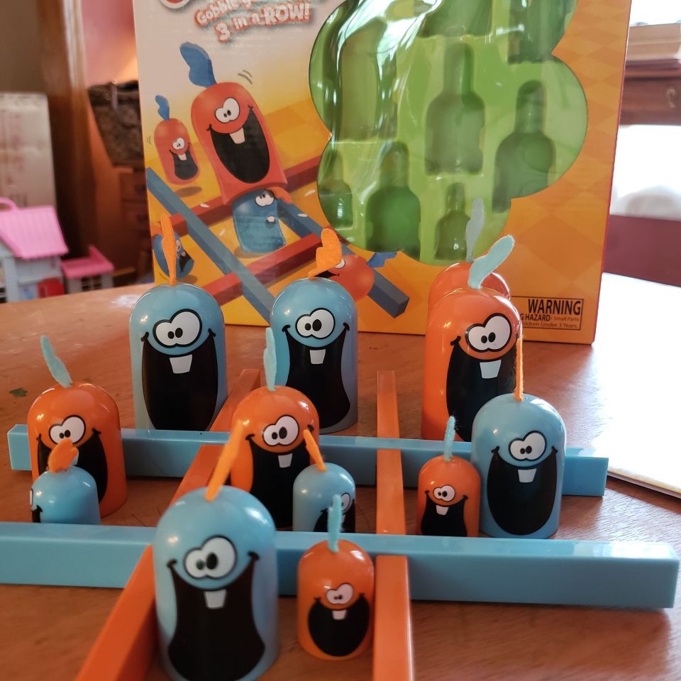 Game play is simple, in addition to the rules for tic-tac-toe, the Goblet Gobblers can “eat” smaller game pieces of the opposite color. The goal is to get three in a row. Not only is the game great at encouraging those important critical thinking skills, but it’s also great fun.